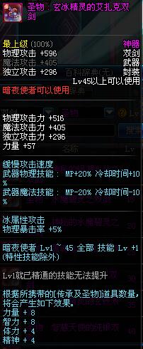 | 45 | 圣物 : 玄冰精灵的艾扎克双剑 | *Lv45~51普通地下城怪物掉落 |