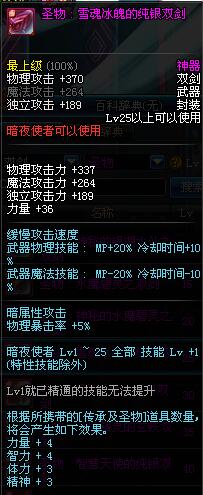 | 25 | 圣物 : 雪魂冰魄的纯银双剑 | *Lv24~31普通地下城怪物掉落 | ||