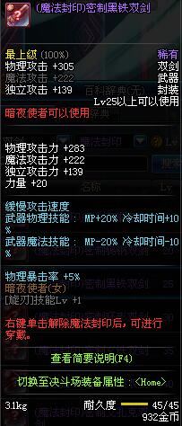 | 25 | (魔法封印)密制黑铁双剑 | *Lv24~31普通地下城怪物掉落 *在NPC阿尔伯特·伯恩斯坦的物品店购买 *完成[帝国的险恶用心]任务 *使用Lv24~31怪物掉落的设计图进行制作 |