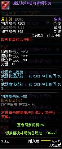 | 15 | (魔法封印)密制青铜双剑 | *Lv13~21普通地下城怪物掉落 *完成[专职贺礼]任务 |