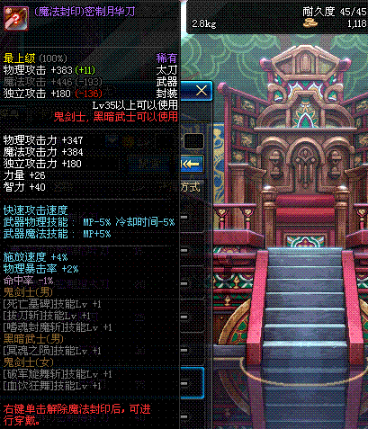 | 35 | (魔法封印)密制月华刀 | *Lv34~41普通地下城怪物掉落 |
