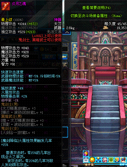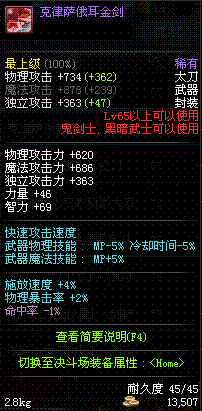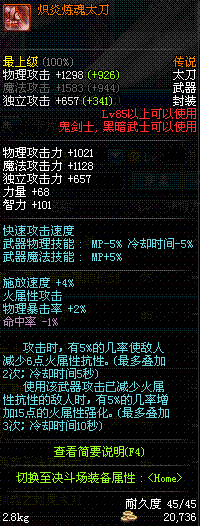 | 85 | 炽炎炼魂太刀 | *炽炎之艾格尼丝 掉落(地下城: 擎天之柱 5图) *设计图(地下城 擎天之柱 登场的NPC加百利 出售) |