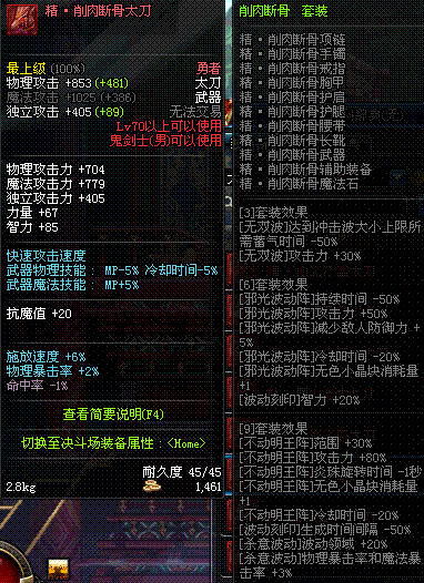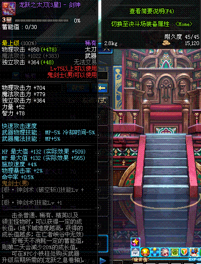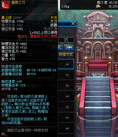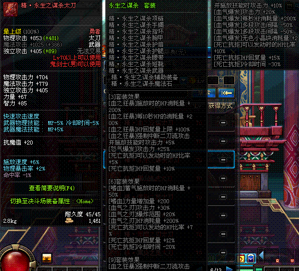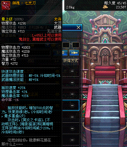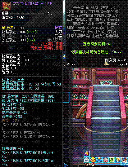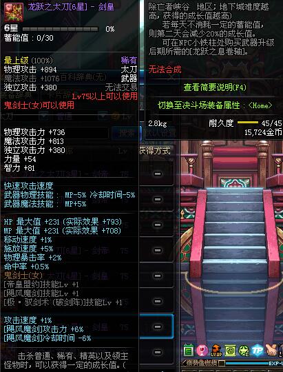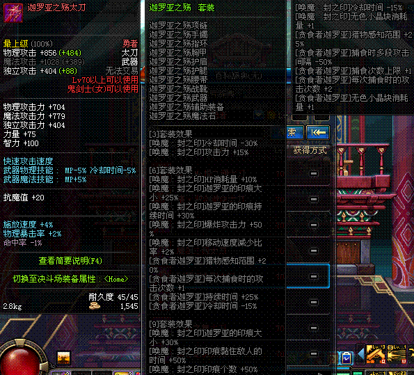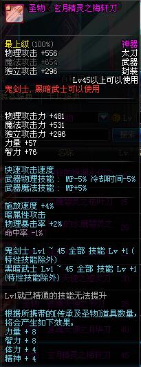 | 45 | 圣物 : 玄月精灵之梅轩刀 | *Lv45~51普通地下城怪物掉落 |