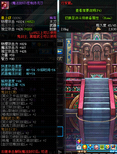 | 85 | (魔法封印)密制赤月刀 | *Lv85~91普通地下城怪物掉落 *完成[黑色迷雾]任务 |