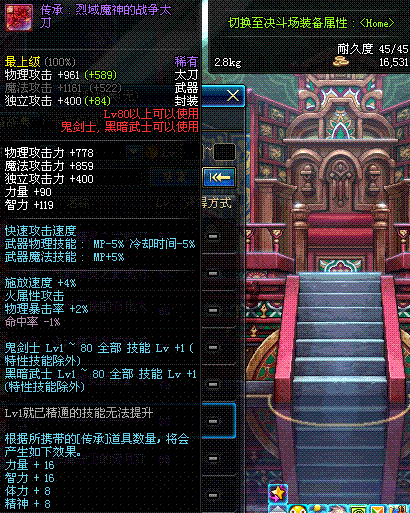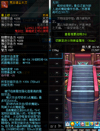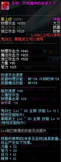 | 80 | 圣物 : 烈域魔神的战争太刀 | *Lv80~86普通地下城怪物掉落 | ||