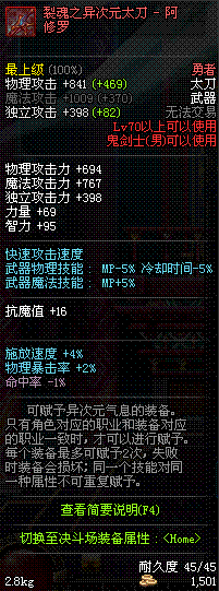 | 55 | 邪龙的骨角太刀 | 邪龙斯皮兹 掉落(地下城:邪龙的封印) *在NPC克伦特的物品店购买(阿拉德陨石×330) |