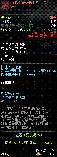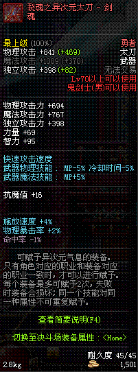 | 70 | 裂魂之异次元太刀 – 剑魂 | *领主 掉落 (地下城:虚无之境, 黑色大地, 巴卡尔之城) | ||