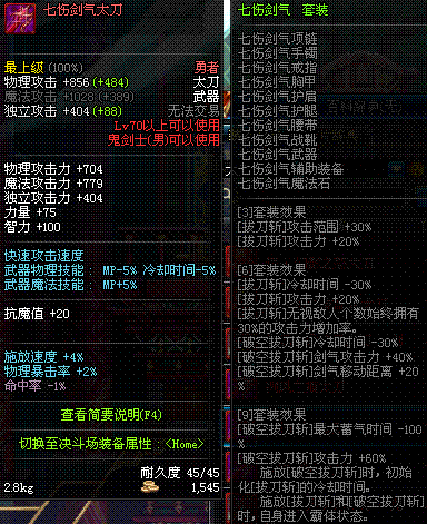 | 70 | 七伤剑气太刀 | |||