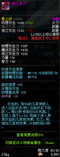 | 35 | 血之末刃 | *Lv34~41普通地下城怪物掉落 *在加百利的神秘商店购买 |