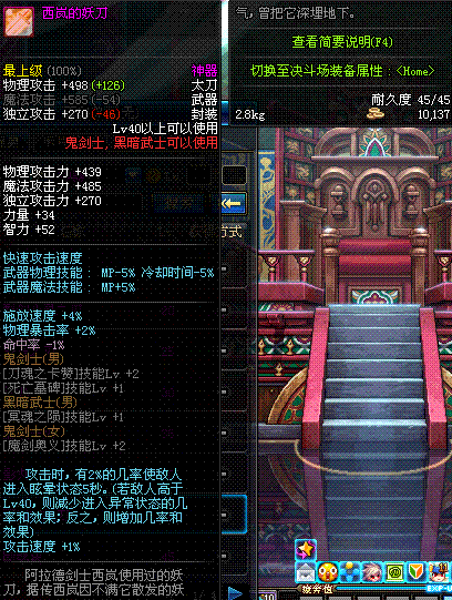 | 40 | 西岚的妖刀 | *Lv39~46普通地下城怪物掉落 *在加百利的神秘商店购买 |