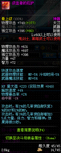 | 55 | 血光摄魂刃 | *Lv53~61普通地下城怪物掉落 *在加百利的神秘商店购买 |