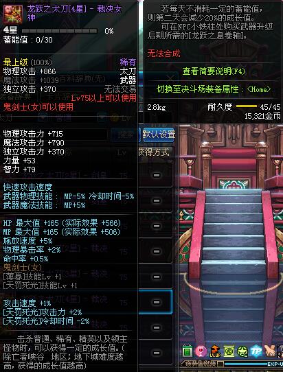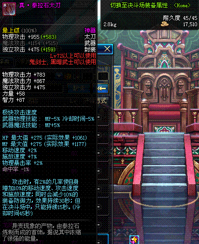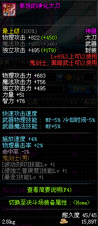 | 65 | 泰坦的净化太刀 | *Lv65~71普通地下城怪物掉落 *在加百利的神秘商店购买 |