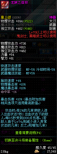 | 辅助装备: | 全职业 鬼剑士 女鬼剑 女格斗 男格斗 神枪手 女枪手 魔法师 男法师 圣职者 暗夜使者 守护者 |