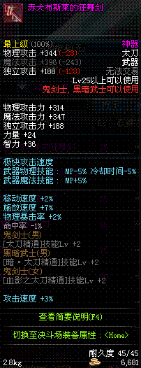| 25 | 赤犬布斯莱的狂舞剑 | *赤犬布加迪 掉落(地下城:赫顿玛尔旧街区) *在NPC阿尔伯特·伯恩斯坦的物品店购买(阿拉德陨石×60) |