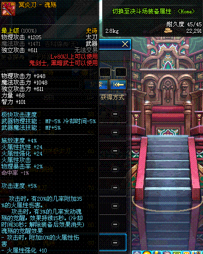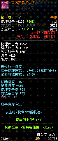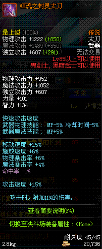 | 85 | 镇魂之封灵太刀 | *时空之门地区 - 吟游诗人艾丽丝 出售 (镇魂之石×100) *购买镇魂武器礼盒(低级镇魂之石×140) |