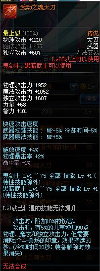 | 85 | 释魂之真灵太刀 | *设计图 (时空之门地区 - 吟游诗人艾丽丝 出售) | * 狂战士 | |