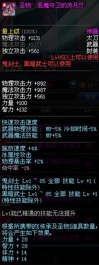 | 85 | 圣物 : 恶魔守卫的赤月刀 | *Lv85~91普通地下城怪物掉落 | ||