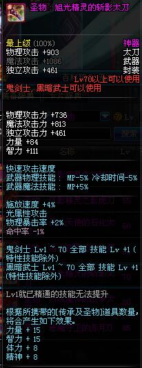 | 70 | 圣物 : 旭光精灵的斩影太刀 | *Lv70~76普通地下城怪物掉落 |