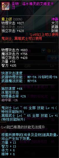 | 65 | 圣物 : 洛水精灵的艾维亚太刀 | *Lv65~71普通地下城怪物掉落 |