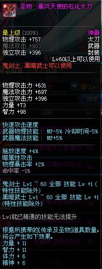 | 60 | 圣物 : 暴风天使的石化太刀 | *Lv58~66普通地下城怪物掉落 |