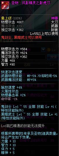 | 55 | 圣物 : 风影精灵之影虎刀 | *Lv53~61普通地下城怪物掉落 |