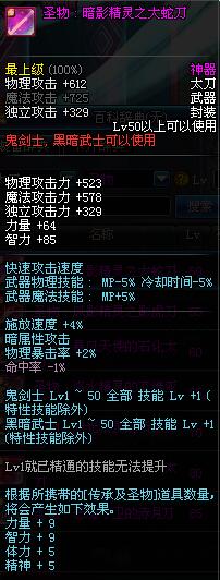 | 50 | 圣物 : 暗影精灵之大蛇刀 | *Lv50~56普通地下城怪物掉落 |