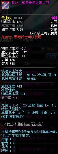 | 25 | 圣物 : 惩罚天使之短太刀 | *Lv24~31普通地下城怪物掉落 | ||