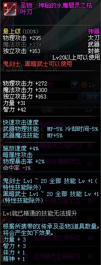| 20 | 圣物 : 神秘的水魔碧灵之枯叶刀 | *Lv19~26普通地下城怪物掉落 | ||