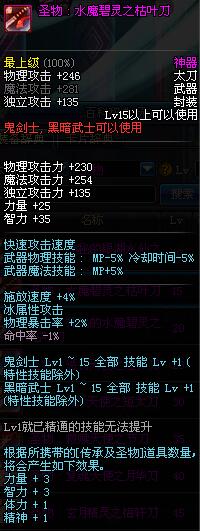 | 15 | 圣物 : 水魔碧灵之枯叶刀 | *Lv13~21普通地下城怪物掉落 |