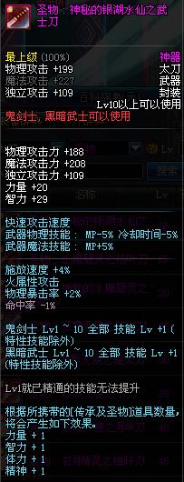| 10 | 圣物 : 神秘的银湖水仙之武士刀 | *Lv8~14普通地下城怪物掉落 |