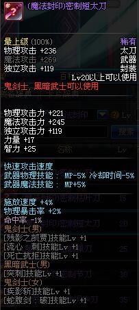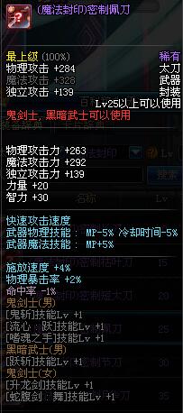 | 80 | (魔法封印)密制紫暮刀 | *Lv80~86普通地下城怪物掉落 |