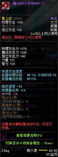 | 15 | (魔法封印)密制枯叶刀 | *Lv13~21普通地下城怪物掉落 *完成[专职贺礼]任务 |