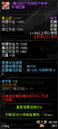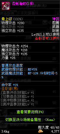 | 辅助装备: | 全职业 鬼剑士 女鬼剑 女格斗 男格斗 神枪手 女枪手 魔法师 男法师 圣职者 暗夜使者 守护者 |