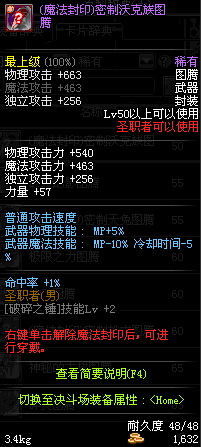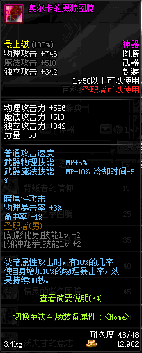 | 50 | 奥尔卡的黑狼图腾 | *Lv50~56普通地下城怪物掉落 *在加百利的神秘商店购买 |