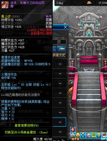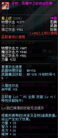 | 85 | 圣物 : 恶魔守卫的染血图腾 | *Lv85~91普通地下城怪物掉落 | ||