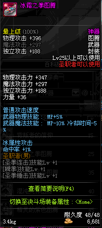 | 25 | 冰霜之拳图腾 | *Lv24~31普通地下城怪物掉落 *在加百利的神秘商店购买 |