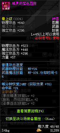 | 45 | 精灵的紫色图腾 | *Lv45~51普通地下城怪物掉落 *在加百利的神秘商店购买 |