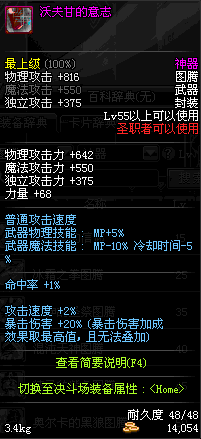 | 55 | 沃夫甘的意志 | *Lv53~61普通地下城怪物掉落 *在加百利的神秘商店购买 |