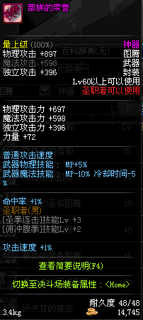 | 60 | 部族的荣誉 | *Lv58~66普通地下城怪物掉落 *在加百利的神秘商店购买 |