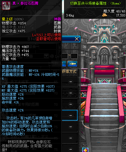 | 72 | 真 · 泰拉石图腾 | *设计图(70LV以上普通地下城 登场的NPC加百利 出售) *泰拉石图腾 → 用远古神器装备进化书升级(NPC船长鲁特 出售) |