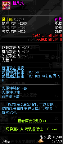 | 80 | 栖凤炎 | *Lv80~86普通地下城怪物掉落 *在加百利的神秘商店购买 |