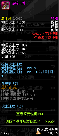 | 85 | 破碎山河 | *Lv85~91普通地下城怪物掉落 *在加百利的神秘商店购买 |