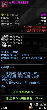 | 45 | 圣物 : 冥火精灵之图腾 | *Lv45~51普通地下城怪物掉落 |