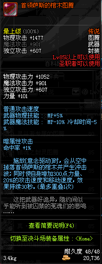 | 85 | 首领萨斯的棺木图腾 | *首领萨斯 掉落(地下城: 魂:幽灵列车 4图) *设计图(地下城 魂:幽灵列车 登场的NPC加百利 出售) |