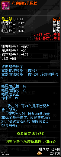 | 85 | 布鲁的怨灵图腾 | *巨灵布鲁 掉落(地下城: 魂:幽灵列车 5图) *设计图(地下城 魂:幽灵列车 登场的NPC加百利 出售) |
