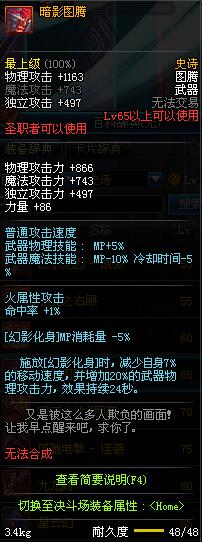 | 65 | 暗影图腾 | *Lv64~71深渊地下城怪物掉落 *在NPC沉默之克雷娅的物品店购买 |