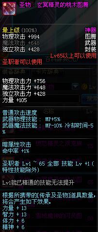 | 65 | 圣物 : 玄冥精灵的桃木图腾 | *Lv65~71普通地下城怪物掉落 |