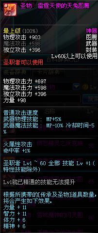 | 60 | 圣物 : 雷霆天使的天兔图腾 | *Lv58~66普通地下城怪物掉落 |