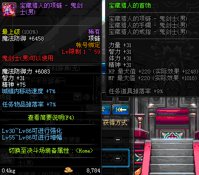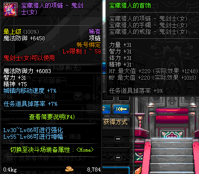 1~59 宝藏猎人的项链 - 鬼剑士(女) *在NPC艾丽丝的物品店购买 (虚空魔石碎片 900)