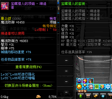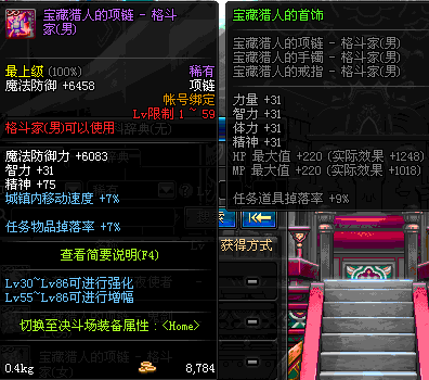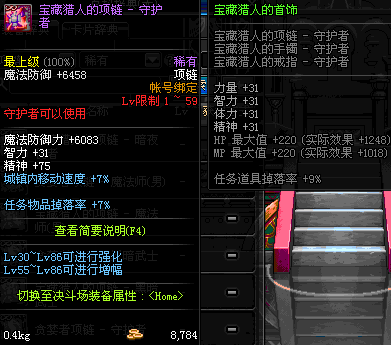 1~59 宝藏猎人的项链 - 魔法师(男) *在NPC艾丽丝的物品店购买 (虚空魔石碎片 900)
